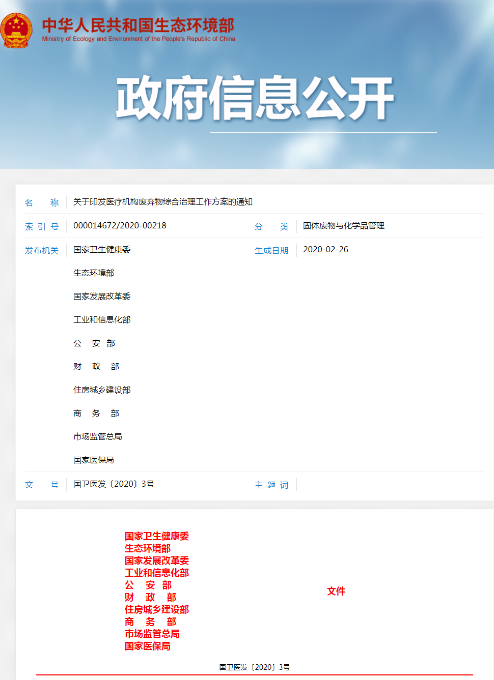 关于印发医疗组织废弃物综合治理工作方案的通知