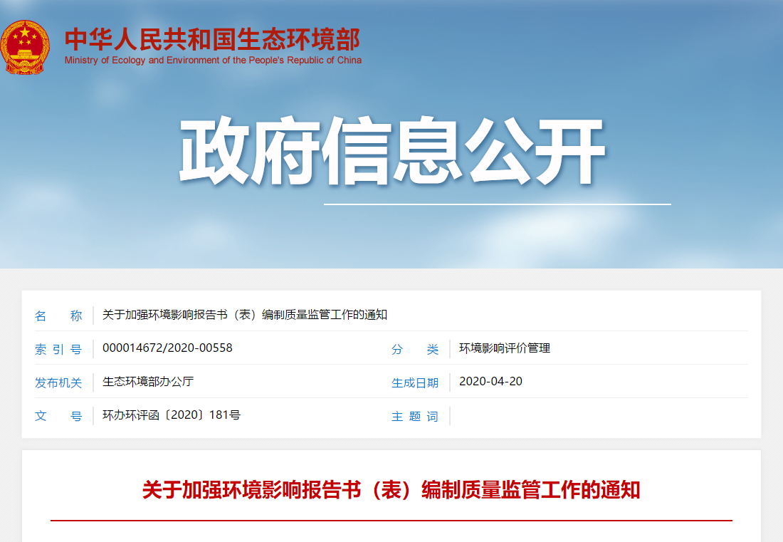 关于加强环境影响报告书(表)编制质量监管工作的通知