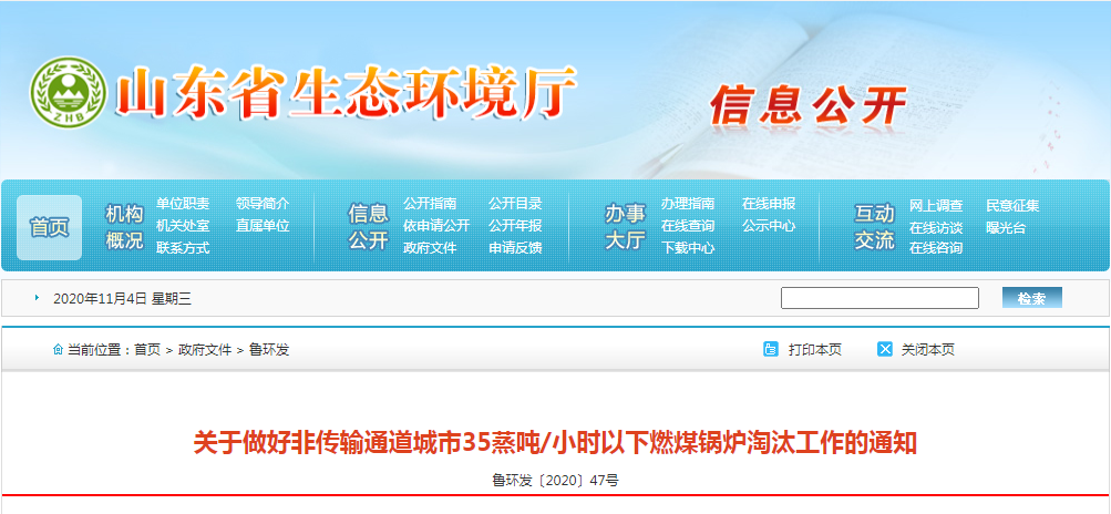 2021年10月底前,青岛、枣庄、东营、烟台、潍坊、泰安、威海、日照、临沂9个非传输通道城市35蒸吨/小时以下燃煤锅炉(高效煤粉炉除外)全部淘汰。全省不再新建35蒸吨/小时以下各种类型燃煤锅炉。