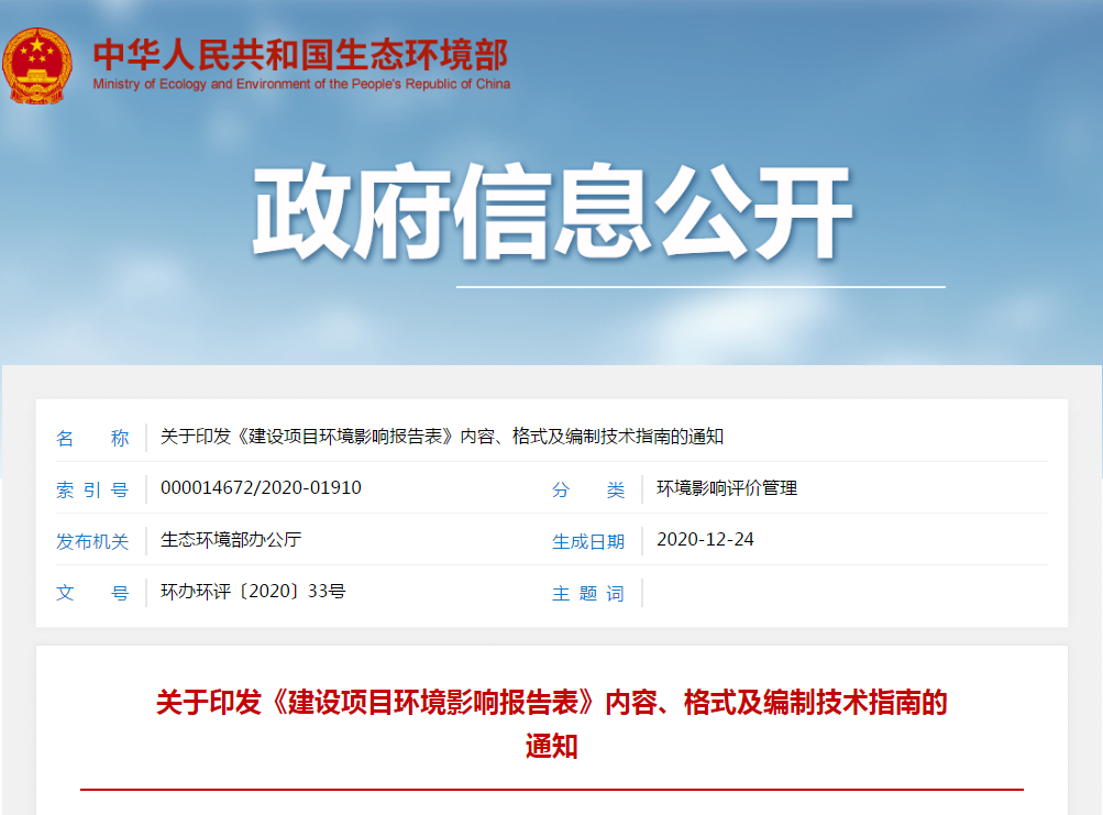 《建设项目环境影响报告表》内容、格式及编制技术指南,自2021年4月1日起实施。自实施之日起,原国家环境保护总局印发的《关于公布〈建设项目环境影响报告表〉(试行)和〈建设项目环境影响登记表〉(试行)内容及格式的通知》(环发〔1999〕178号)废止。