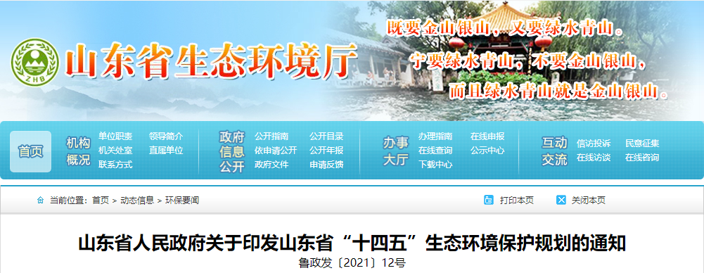 山东省人民政府关于印发山东省“十四五”生态环境保护规划的通知