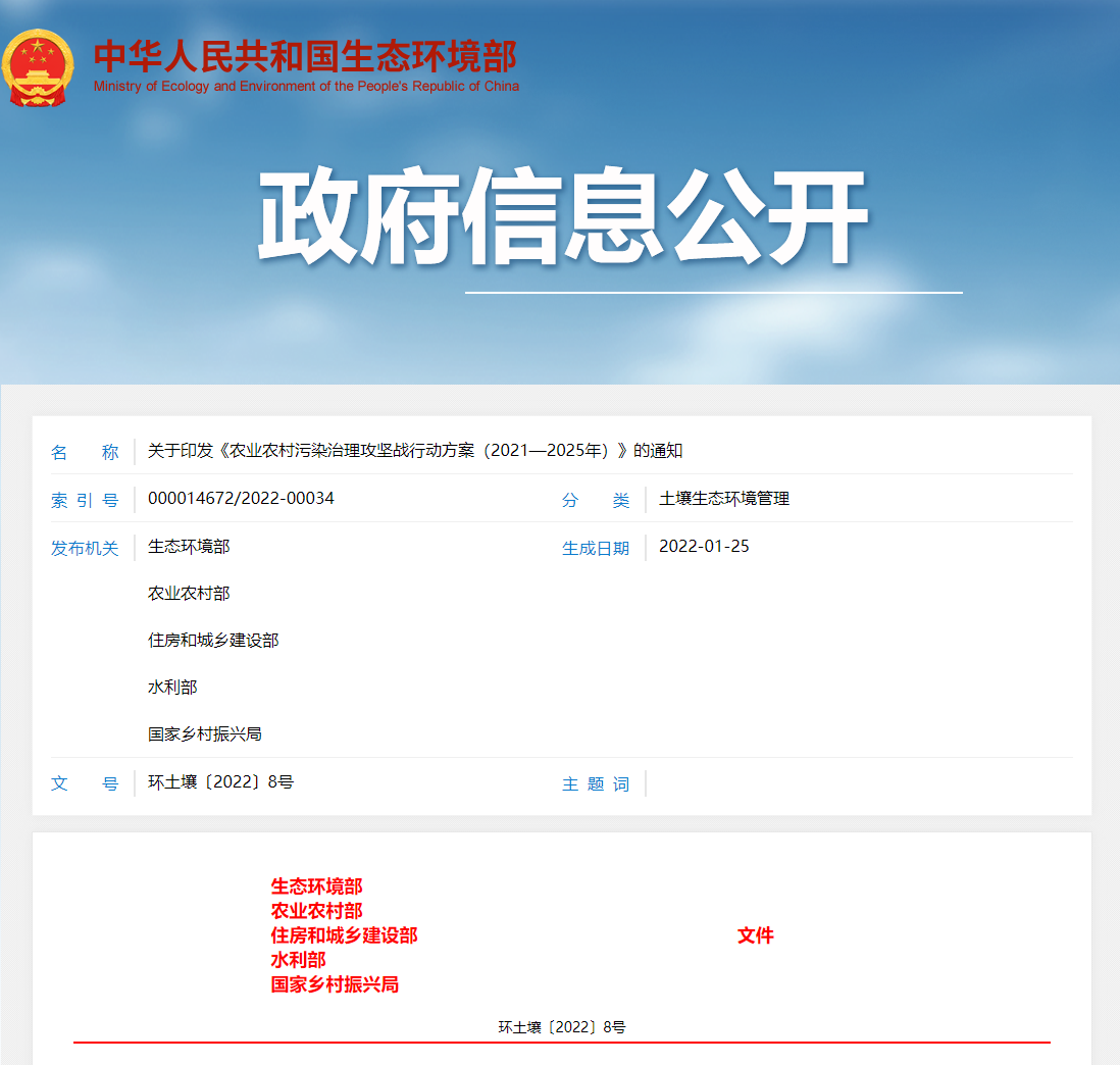 关于印发《农业农村污染治理攻坚战行动方案(2021—2025年)》的通知