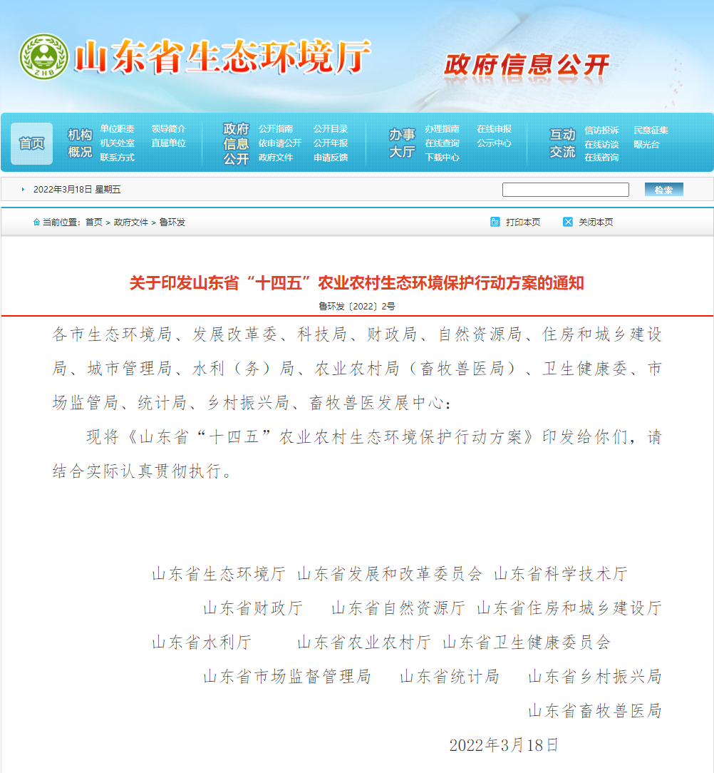 关于印发山东省“十四五”农业农村生态环境保护行动方案的通知