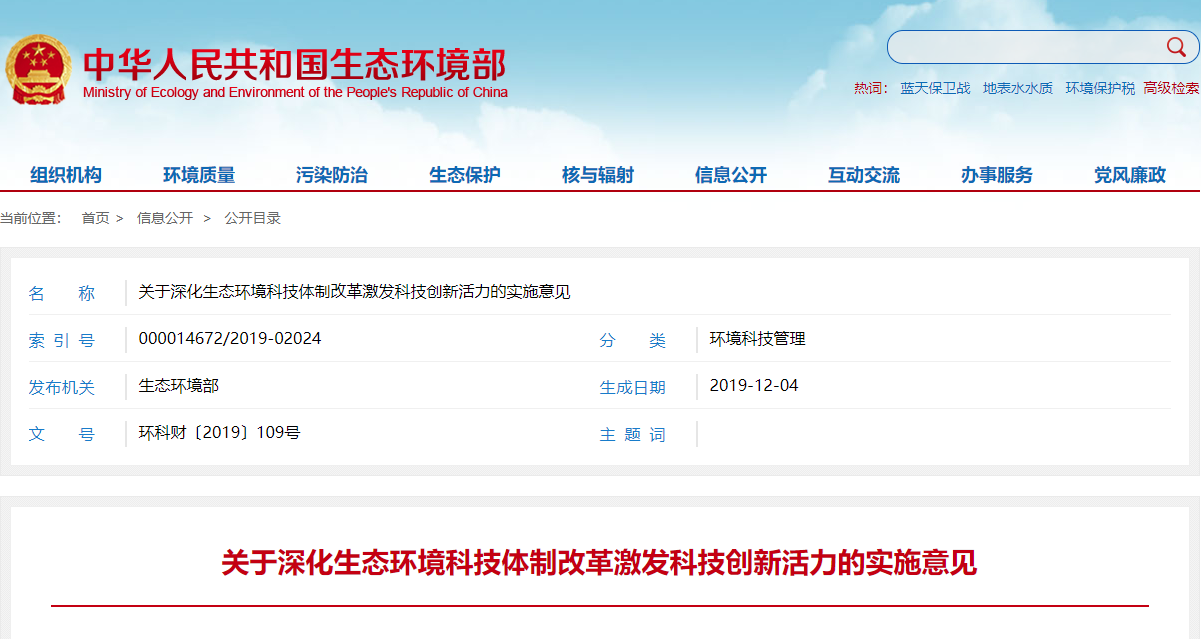 关于深化生态环境科技体制改革激发科技创新活力的实施意见