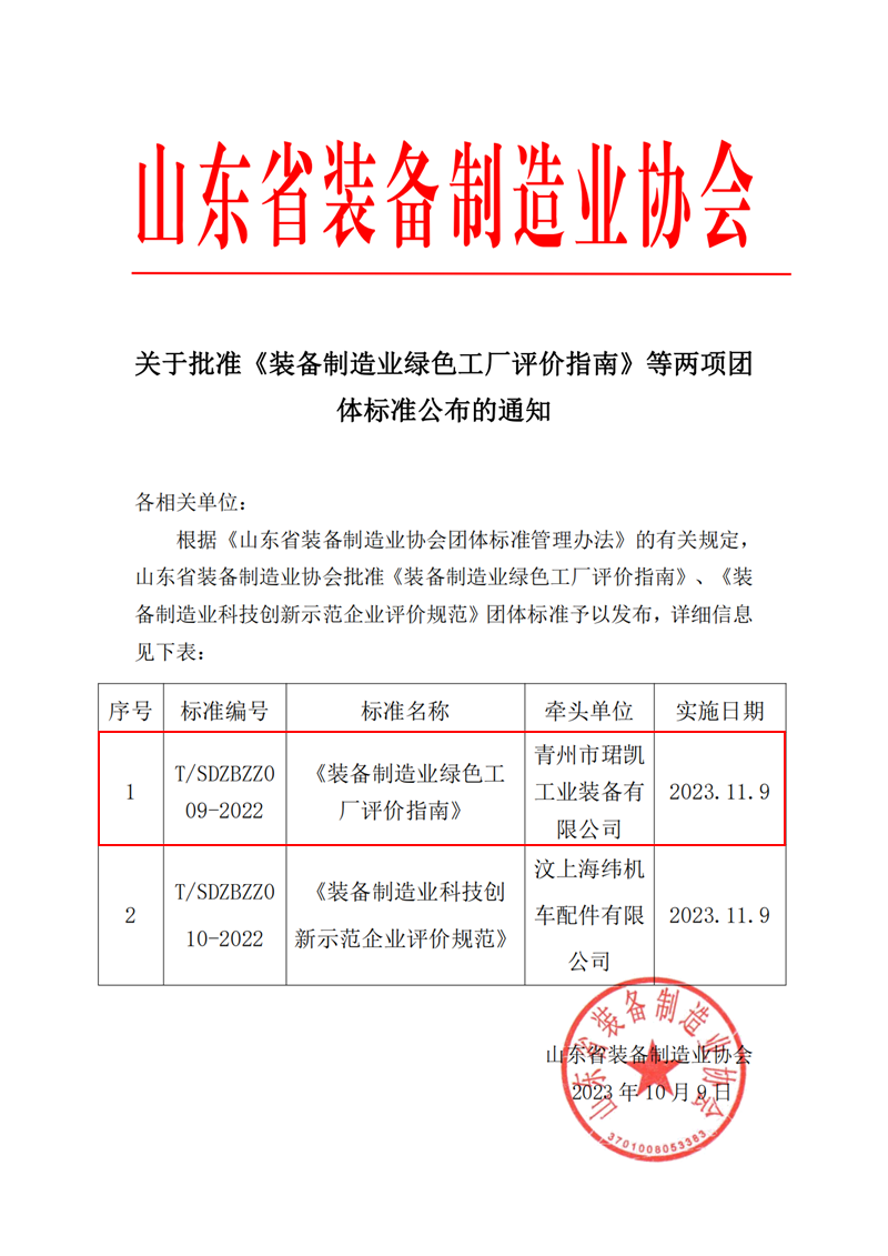 日前,由我公司作为主要起草单位参与编制的《装备制造业绿色工厂评价指南》(T/SDZBZZ 009-2022)标准经山东省装备制造业协会批准,正式发布实施。标准编制中,我公司王艳萍、刘元鹏两位高级工程师全程参与,贡献了Ebpay专家的智慧和力量。